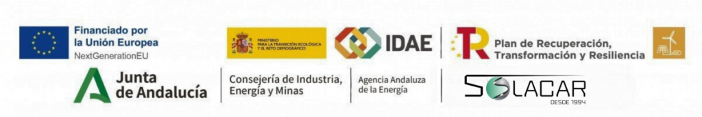 Solacar SL, ha recibido una ayuda de la Unión Europea con cargo al Fondo NextGenerationEU, en el marco del Plan de Recuperación, Trasformación y Resiliencia, para un INSTALACIÓN SOLAR FOTOVOLTAICA DE AUTOCONSUMO dentro del programa de incentivos ligados al autoconsumo y almacenamiento, con fuentes de energía renovable, así como la implantación de sistemas térmicos renovables en el sector residencial del Ministerio para la Transición Ecológica y el Reto Demográfico, gestionado por la Junta de Andalucía, a través de la Agencia Andaluza de la Energía.